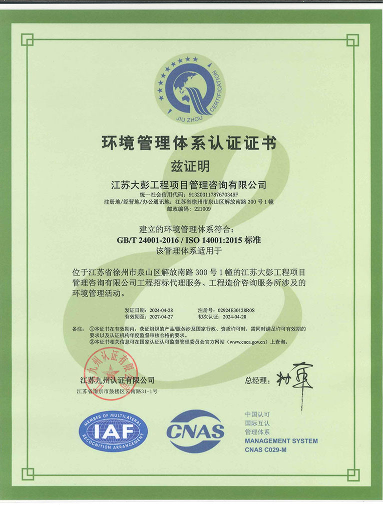 发布时间: 2025/5/28 9:29:40 被阅览数: 334 次 来源: 江苏大彭工程项目管理咨询有限公司
